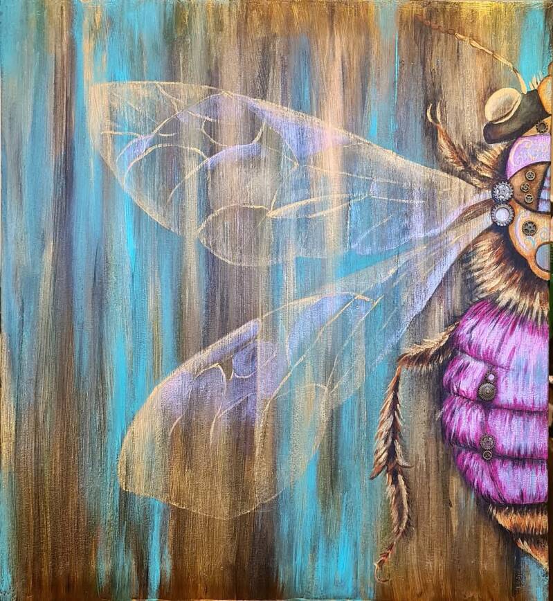 Akryyli/sekatekniikka maalaus kovalevylle.